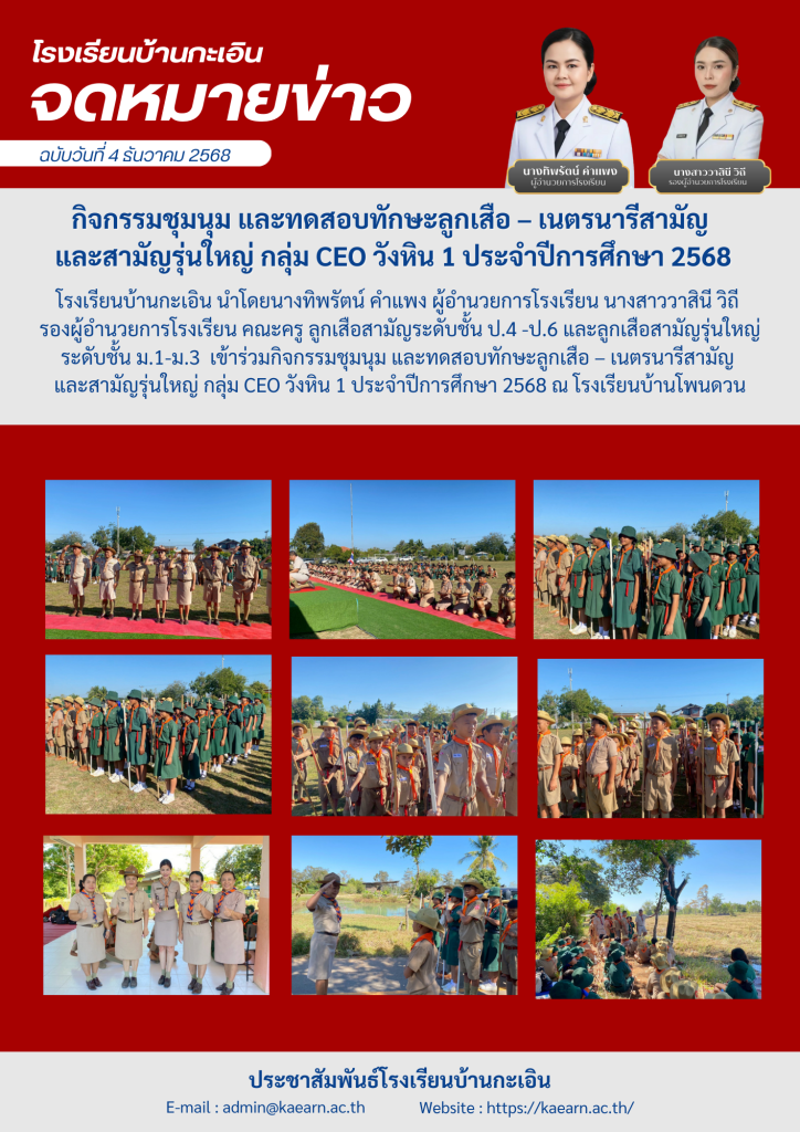 กิจกรรมชุมนุม และทดสอบทักษะลูกเสือ – เนตรนารีสามัญ และสามัญรุ่นใหญ่ กลุ่ม CEO วังหิน 1 ประจำปีการศึกษา 2568