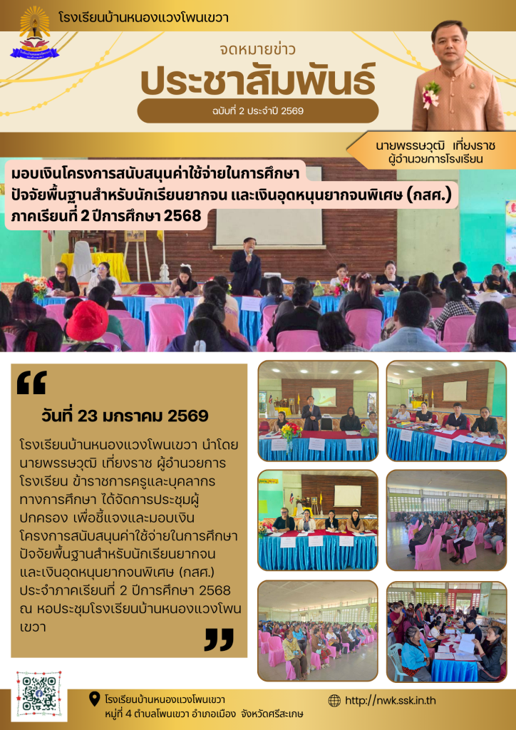 มอบเงินโครงการสนับสนุนค่าใช้จ่ายในการศึกษา ปัจจัยพื้นฐานสำหรับนักเรียนยากจน และเงินอุดหนุนยากจนพิเศษ (กสศ.)ภาคเรียนที่ 2 ปีการศึกษา 2568