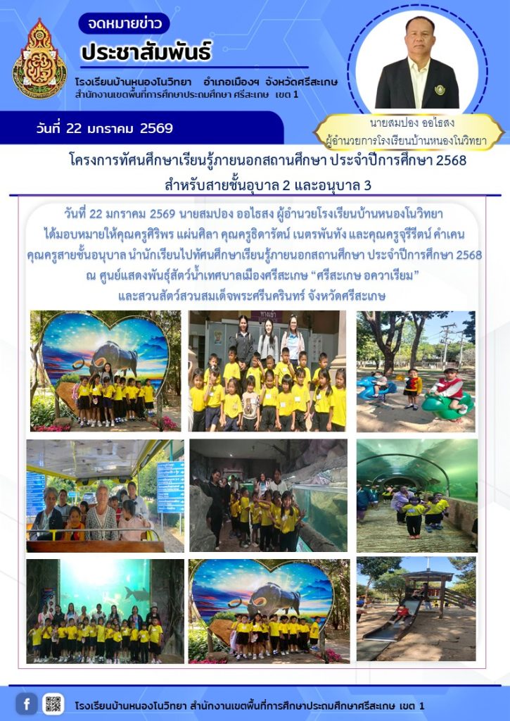 วันที่ 22 มกราคม 2569 นายสมปอง ออไธสง ผู้อำนวยโรงเรียนบ้านหนองโนวิทยา