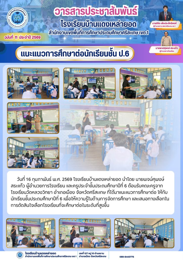 แนะแนวการศึกษาต่อนักเรียนชั้น ป.6