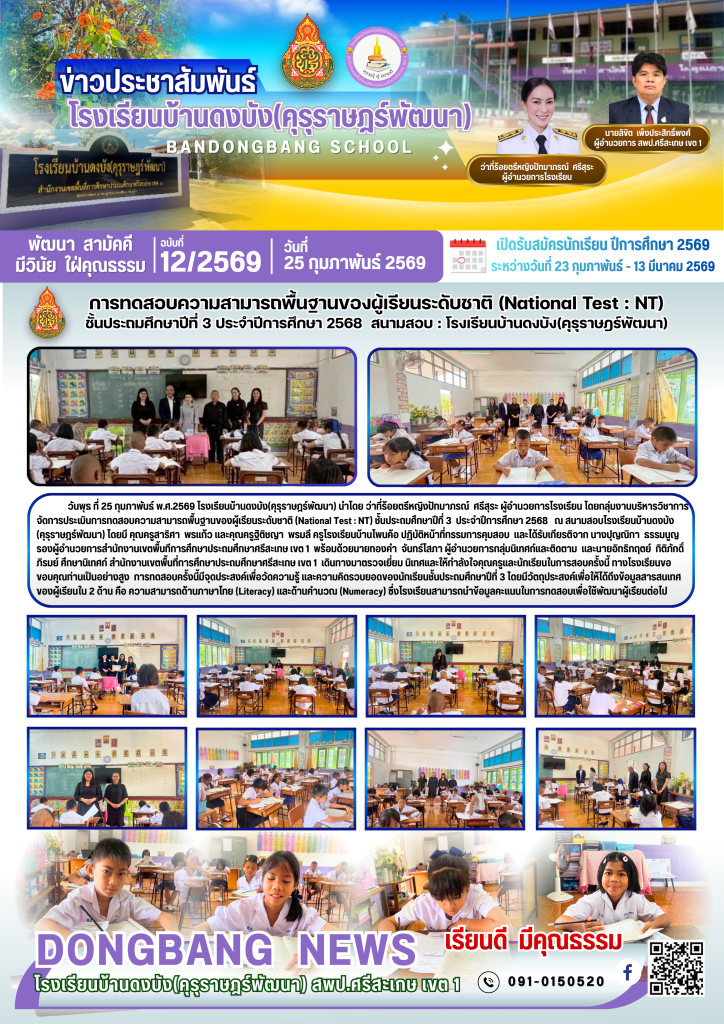 เมื่อวันที่ 25 กุมภาพันธ์ 2569 โรงเรียนบ้านโนนสว่างเข้าทดสอบความสามารถ (NT)