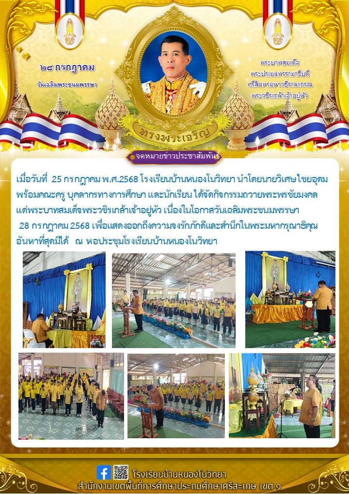 เมื่อวันที่ 25 กรกฎาคม พ.ศ.2568 โรงเรียนบ้านหนองโนวิทยา นำโดยนายวิเศษ ไชยอุดม