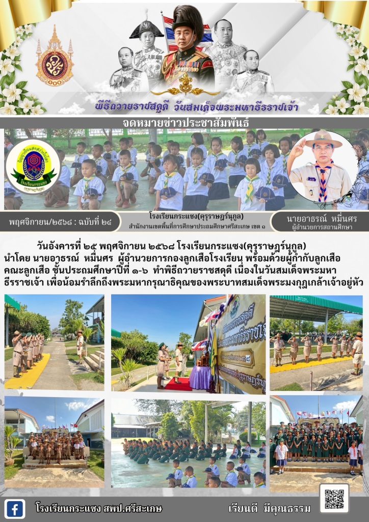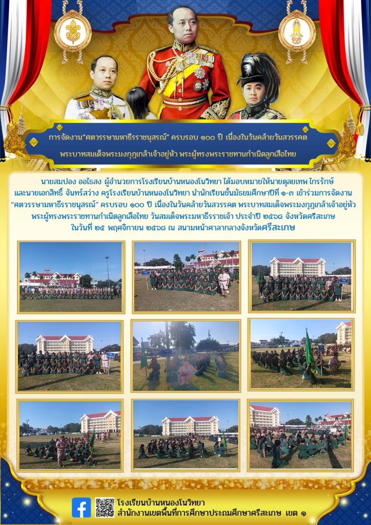 “ศตวรรษามหาธีรราชนุสรณ์” ครบรอบ ๑๐๐ ปี เนื่องในวันคล้ายวันสวรรคต พระบาทสมเด็จพระมงกุฎเกล้าเจ้าอยู่หัว พระผู้ทรงพระราชทานกำเนิดลูกเสือไทย วันสมเด็จพระมหาธีรราชเจ้า ประจำปี ๒๕๖๘ จังหวัดศรีสะเกษ