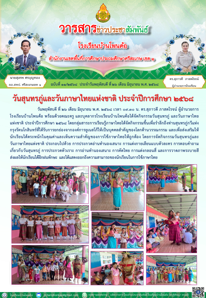 กิจกรรมวันสุนทรภู่คู่วันภาษาไทยปีการศึกษา 2568ณ โรงเรียนบ้านลิงไอ