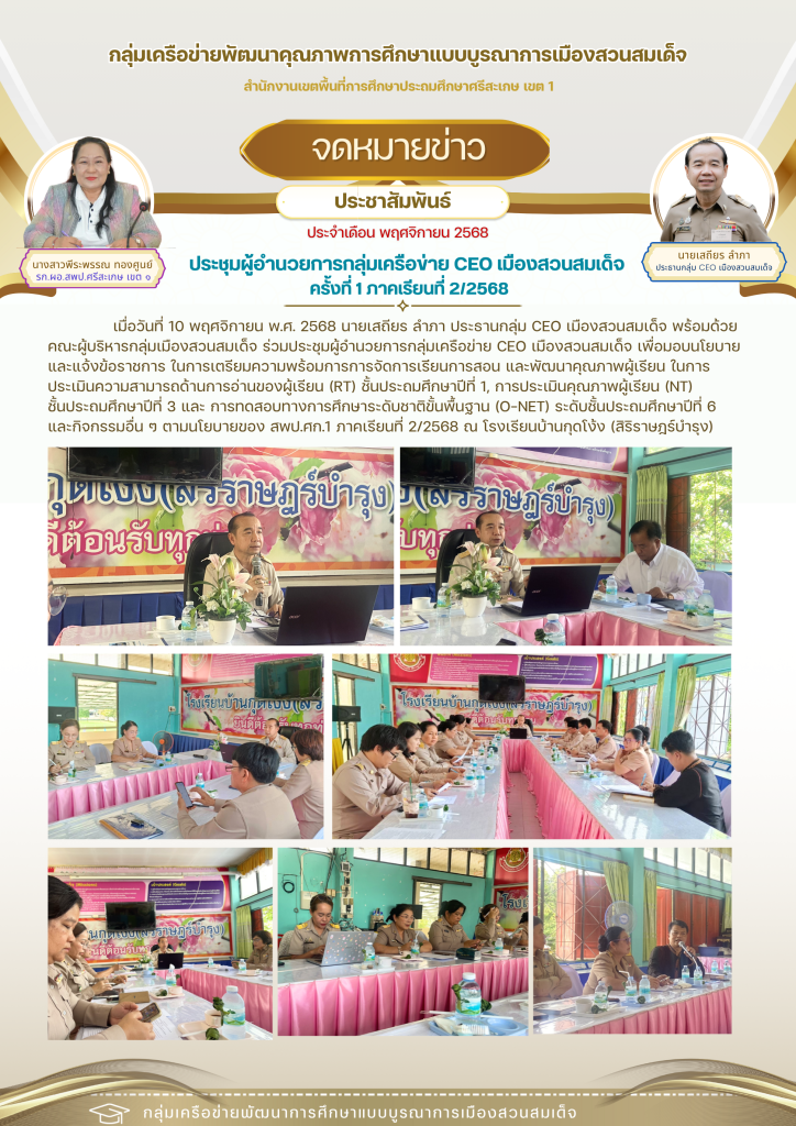 รร.บ้านหนองดุมหนองม่วง เข้ารับการลงพื้นที่โดยคณะศึกษานิเทศก์ เพื่อเก็บข้อมูลการวิจัยเพื่อขับเคลื่อนการศึกษา ภายใต้ พ.ร.บ.พื้นที่นวัตกรรมการศึกษา ดำเนินการโดย สำนักงานศึกษาธิการจังหวัดศรีสะเกษ