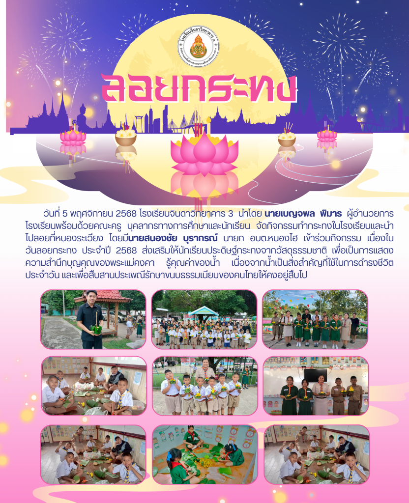 วันที่ 5 พฤศจิกายน 2568 โรงเรียนบ้านธาตุ(สหพัฒนานุสรณ์) นำโดย นายณัฏฐวัฒน์ ชิณวงษ์ ผู้อำนวยการโรงเรียนพร้อมด้วยคณะครู บุคลากรทางการศึกษาและนักเรียน จัดกิจกรรมทำกระทงในโรงเรียนและนำไปลอยที่วัดบ้านธาตุ เนื่องในวันลอยกระทง ประจำปี 2568 ส่งเสริมให้นักเรียนประดิษฐ์กระทงจากวัสดุธรรมชาติ เพื่อเป็นการแสดงความสำนึกบุญคุณของพระแม่คงคา รู้คุณค่าของน้ำ เนื่องจากน้ำเป็นสิ่งสำคัญที่ใช้ในการดำรงชีวิตประจำวัน และเพื่อสืบสานประเพณีรักษาขนบธรรมเนียมของคนไทยให้คงอยู่สืบไป
