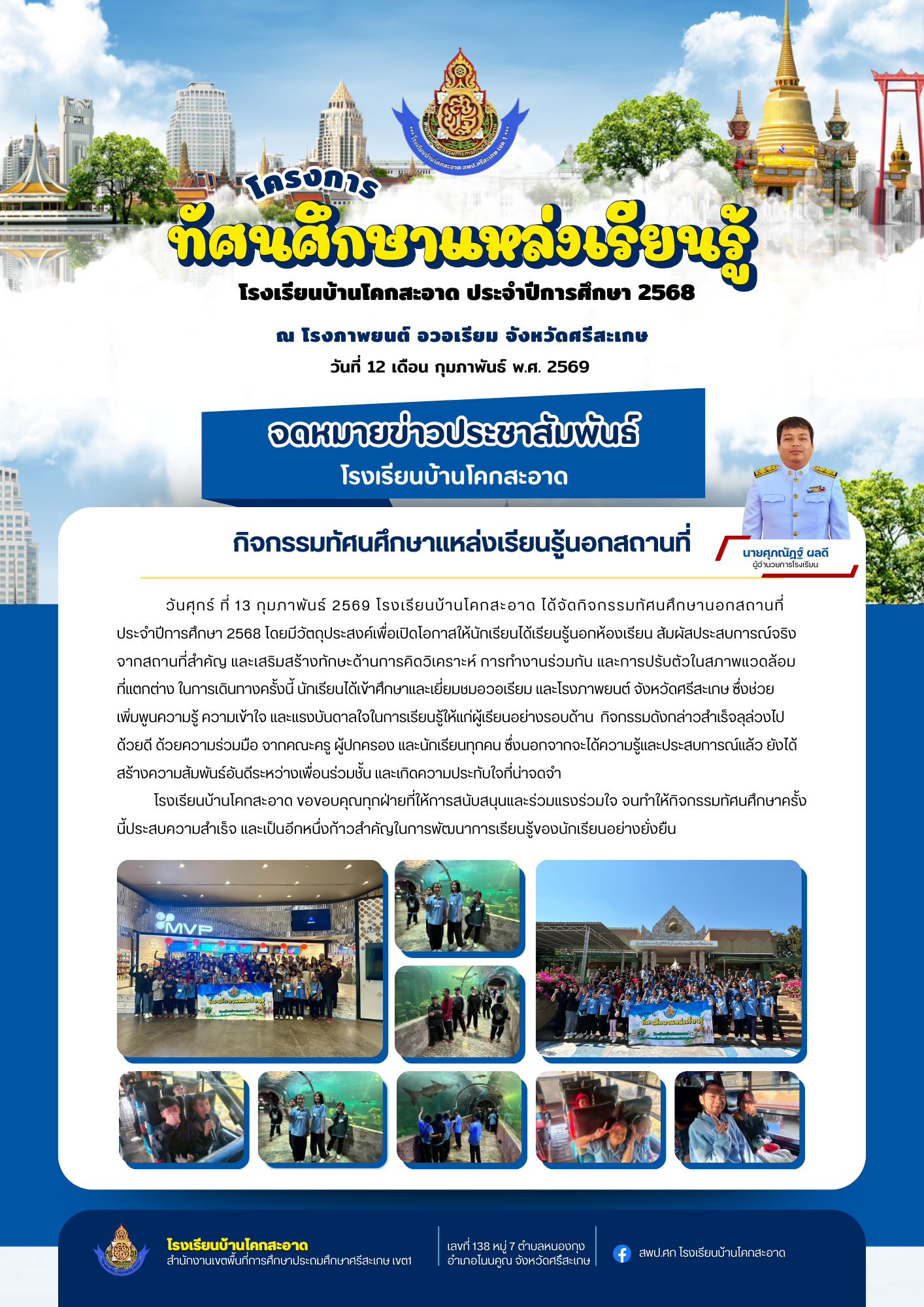 ![]() รร.บ้านโคกสะอาด อ.โนนคูณ วันที่ 17 ก.พ.69 อ่าน: 0 ครั้ง ![]() | ![]() รร.อนุบาลวัดพระโต อ.เมือง วันที่ 17 ก.พ.69 อ่าน: 5 ครั้ง ![]() | ![]() รร.บ้านยางน้อยตองปิด อ.น้ำเกลี้ยง วันที่ 16 ก.พ.69 อ่าน: 7 ครั้ง ![]() | ![]() รร.บ้านเปือย อ.กันทรารมย์ วันที่ 16 ก.พ.69 อ่าน: 3 ครั้ง ![]() | ![]() รร.บ้านหนองแวงโพนเขวา อ.เมือง วันที่ 14 ก.พ.69 อ่าน: 5 ครั้ง |