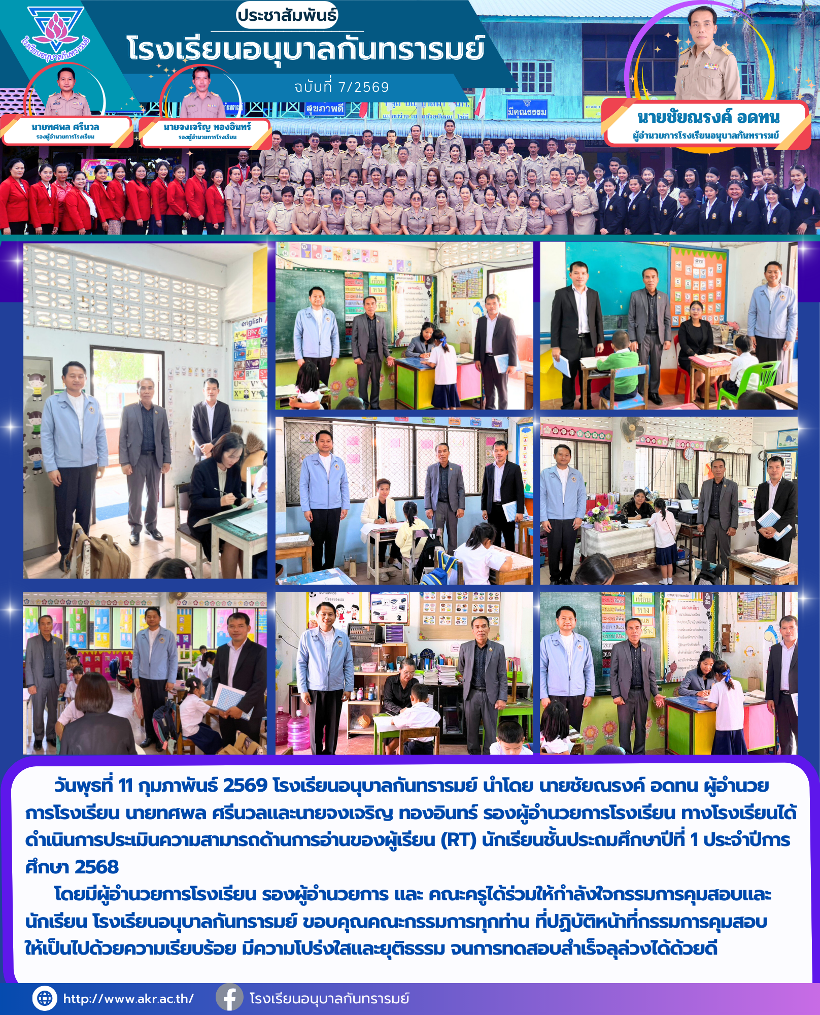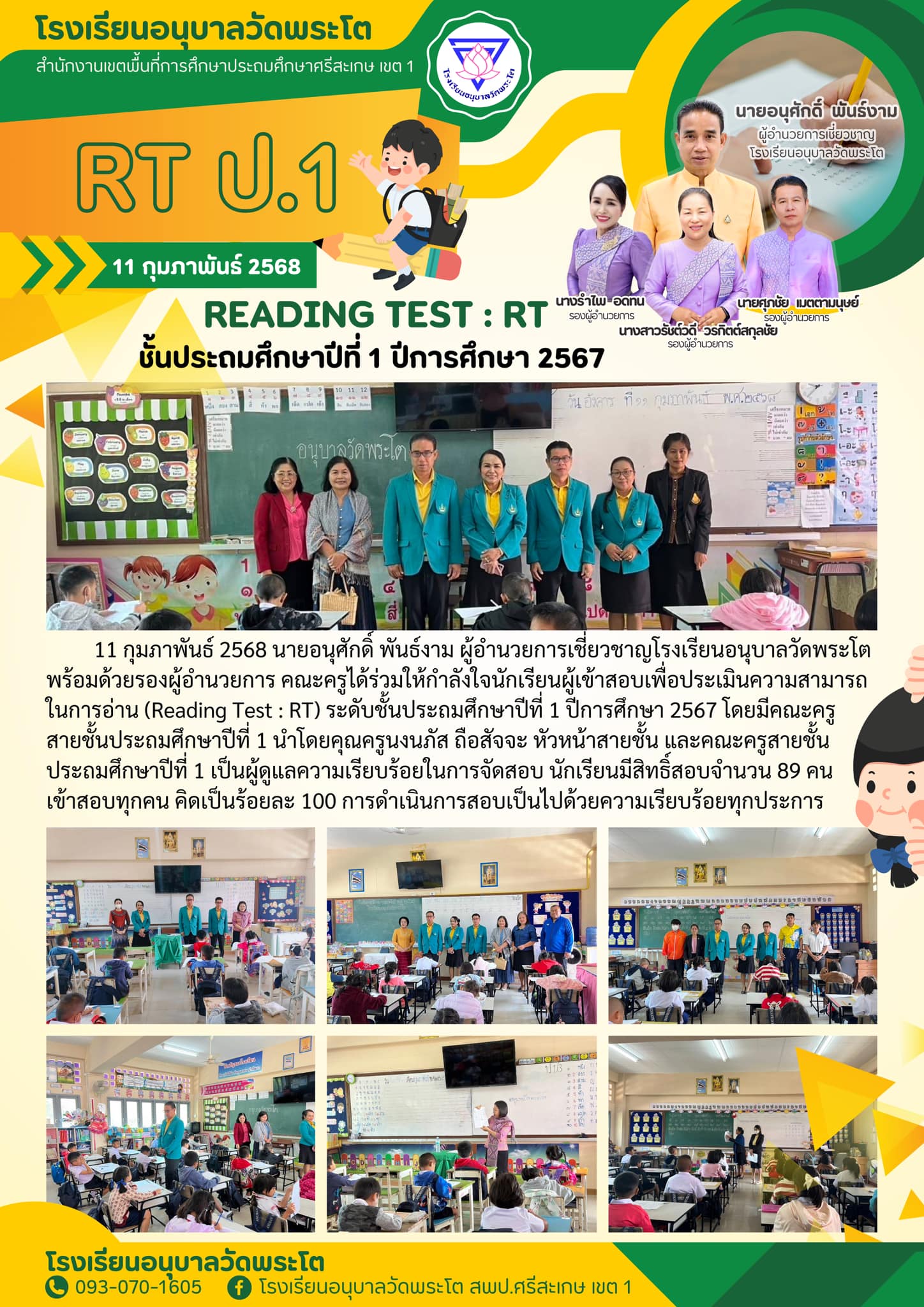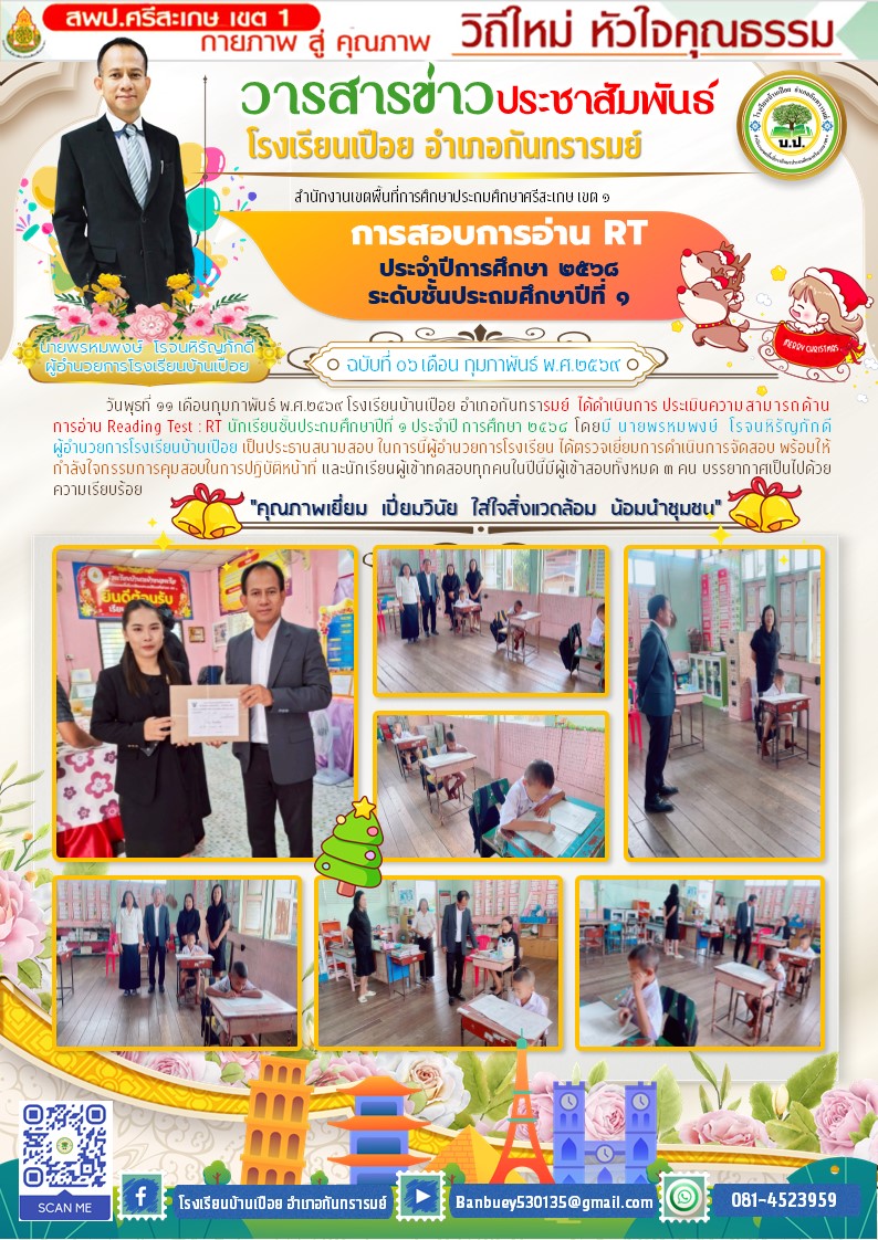 การสอบ RT นักเรียนชั้นประถมศึกษาปีที่ 1 ปีการศึกษา 2568 นำเสนอเมื่อ 17 ก.พ.69 อ่านแล้ว: 7 ครั้ง