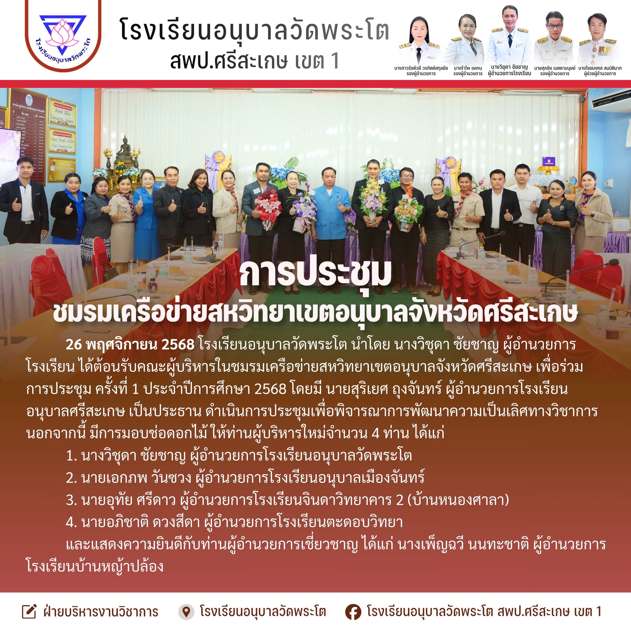 ต้อนรับคณะผู้บริหารและคณะครู รร.อนุบาลกันทรารมย์ ศึกษาดูงาน รร.คุณธรรม สพฐ. นำเสนอเมื่อ 26 พ.ย.64 อ่านแล้ว: 11 ครั้ง