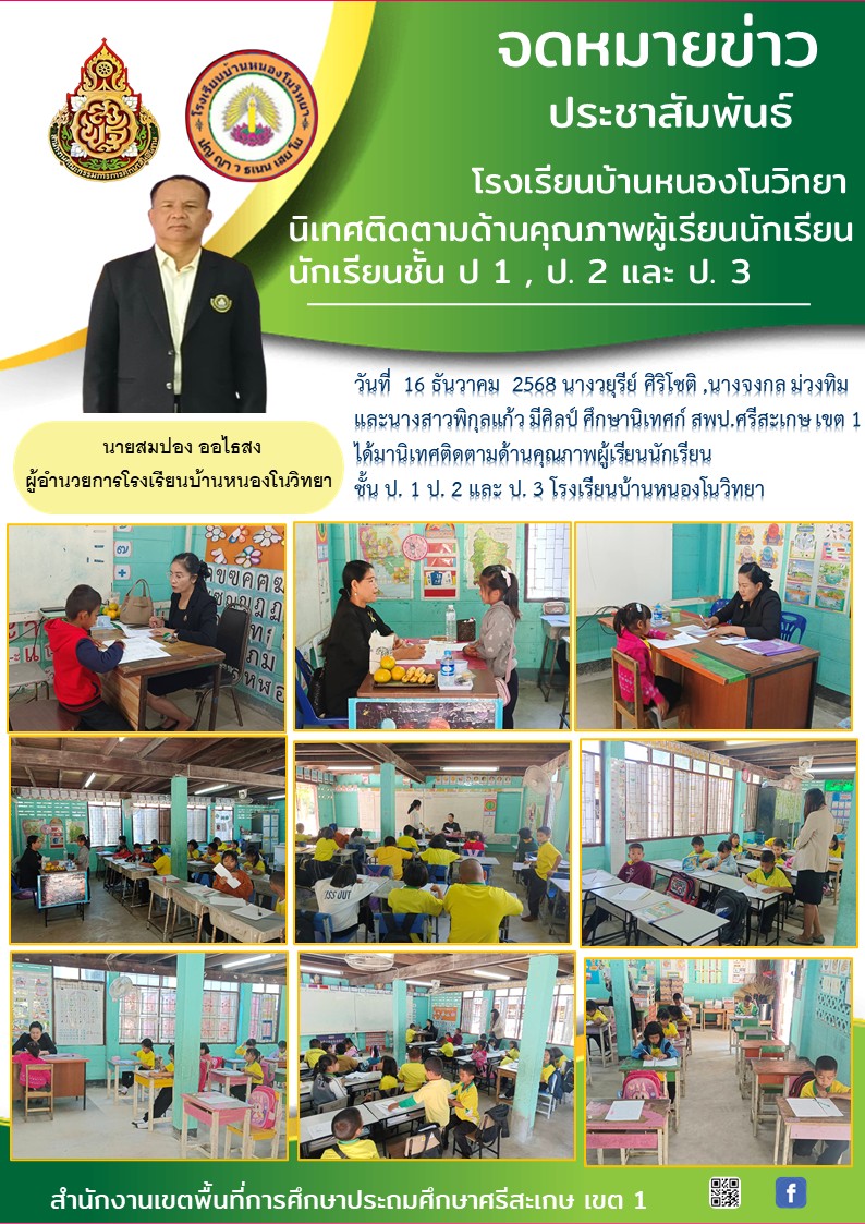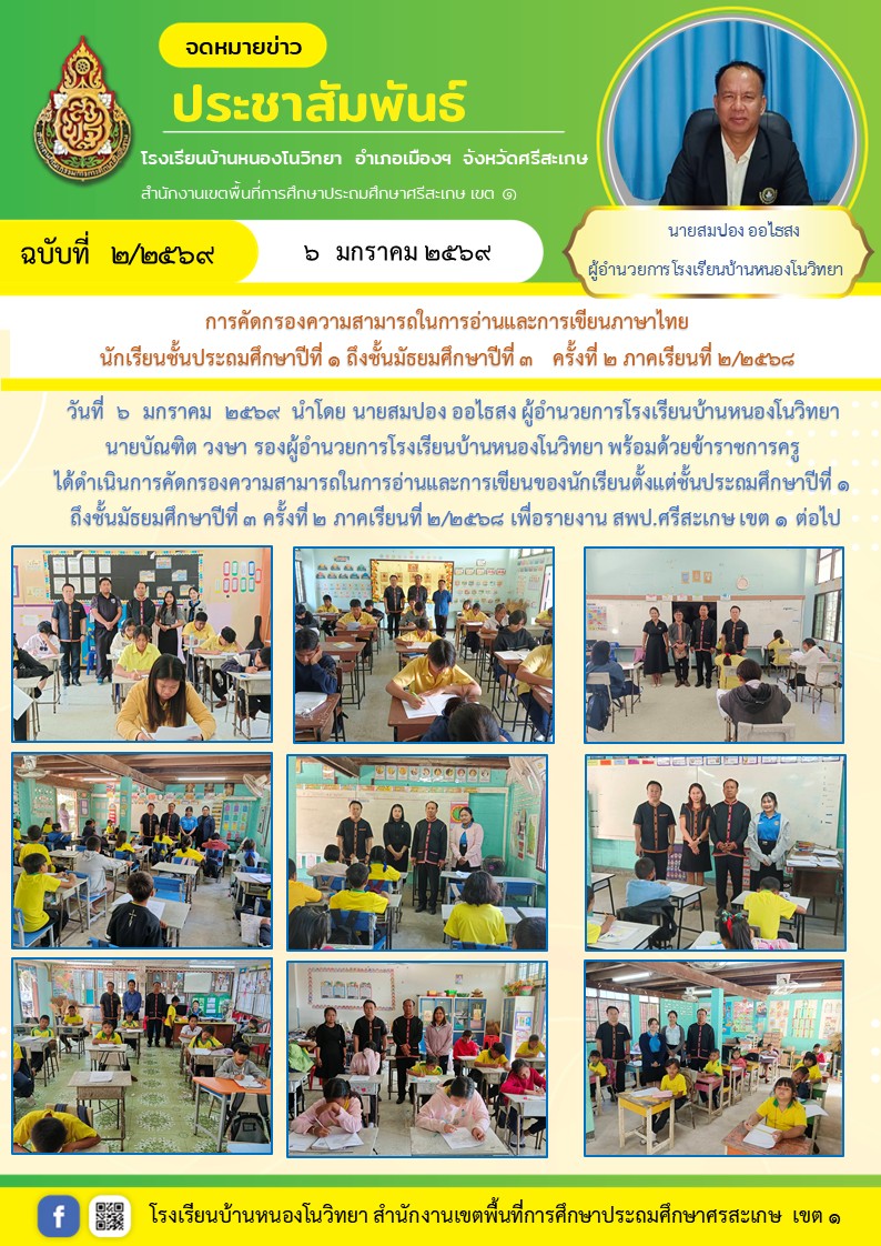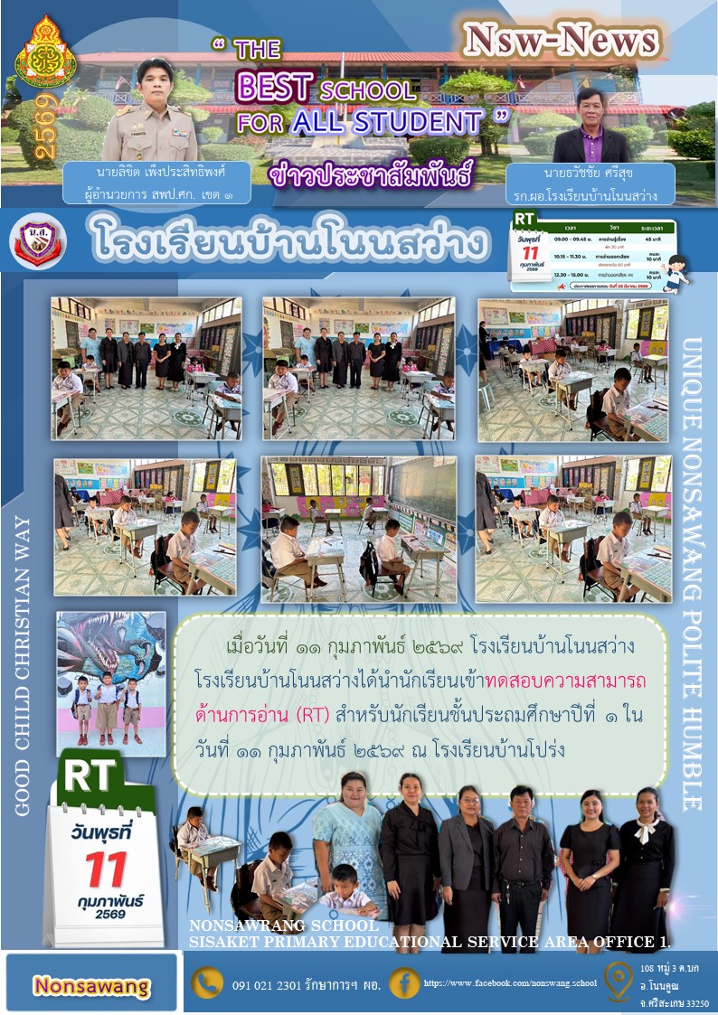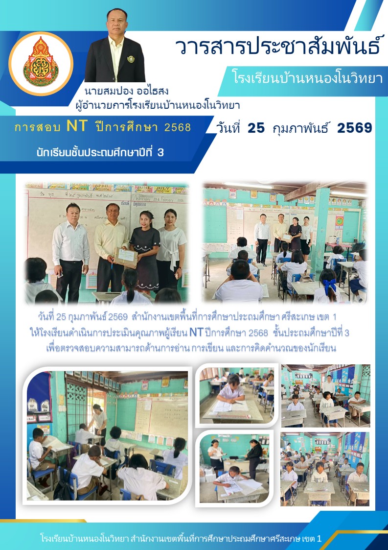 เมื่อวันที่ 25 กุมภาพันธ์ 2569 โรงเรียนบ้านโนนสว่างเข้าทดสอบความสามารถ (NT) นำเสนอเมื่อ 26 ก.พ.69 อ่านแล้ว: 4 ครั้ง