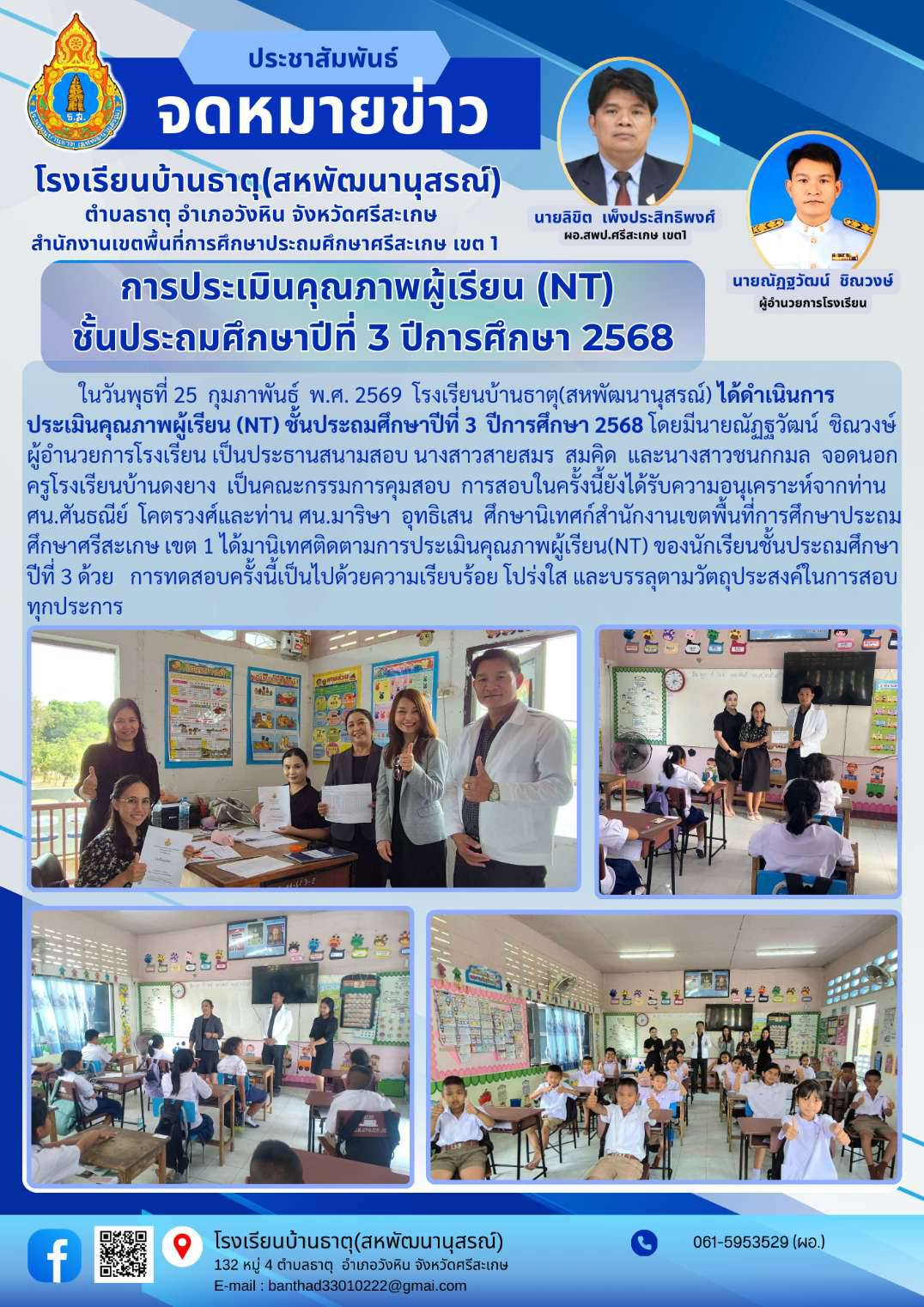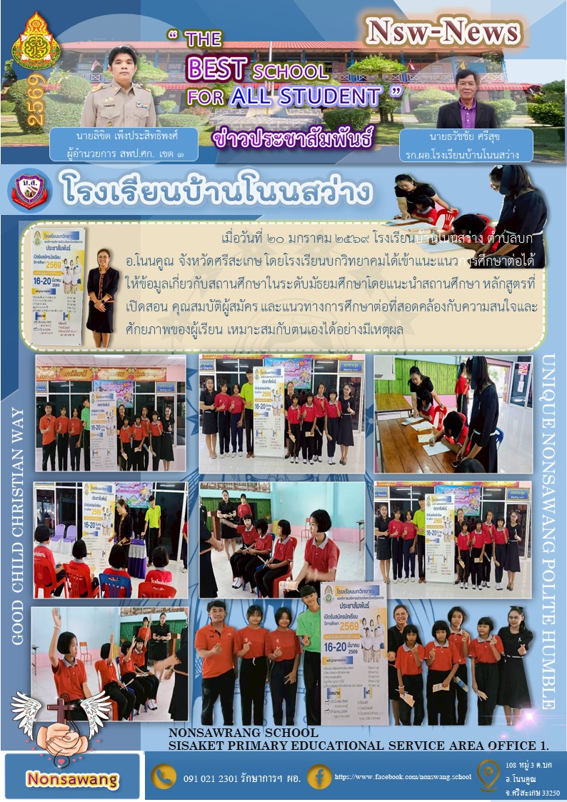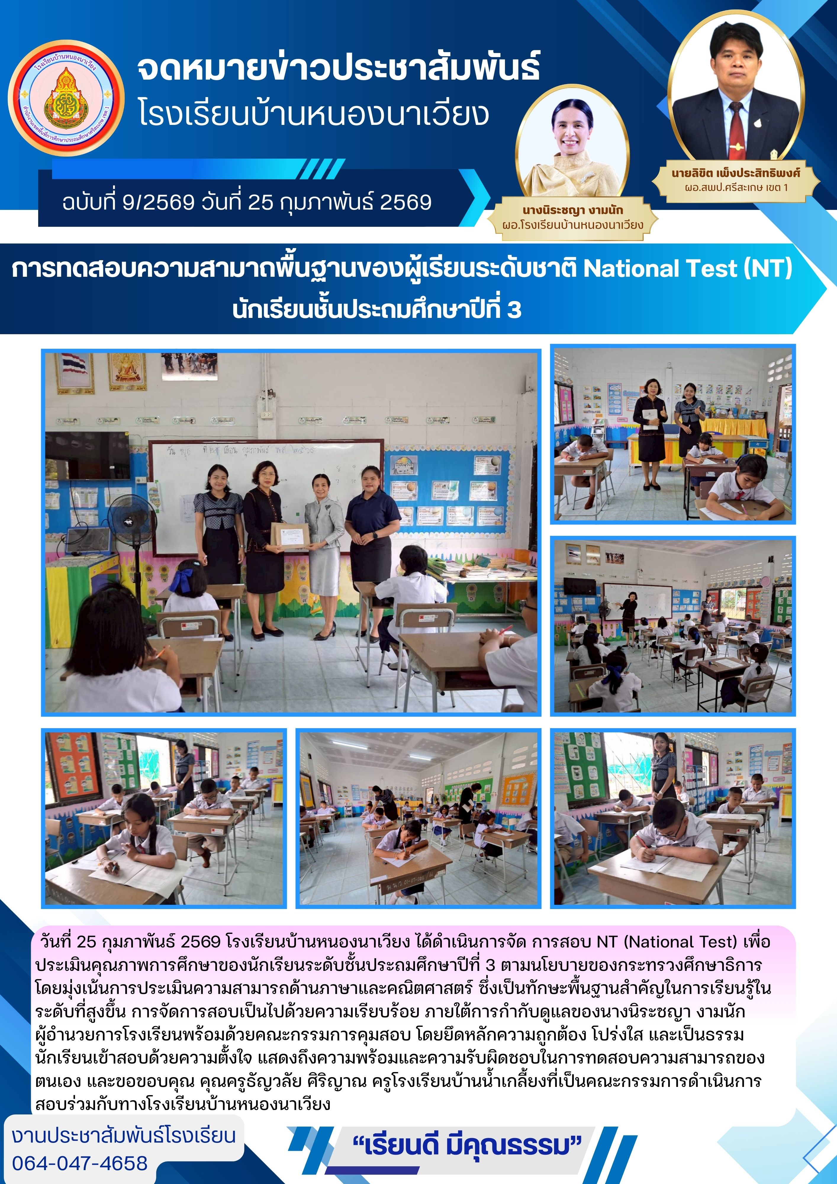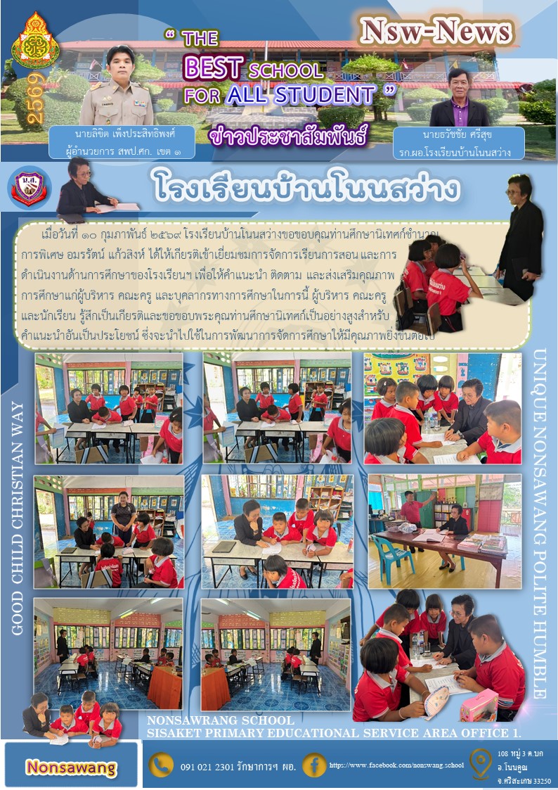 เมื่อวันที่ 25 กุมภาพันธ์ 2569 โรงเรียนบ้านโนนสว่างเข้าทดสอบความสามารถ (NT) นำเสนอเมื่อ 26 ก.พ.69 อ่านแล้ว: 4 ครั้ง