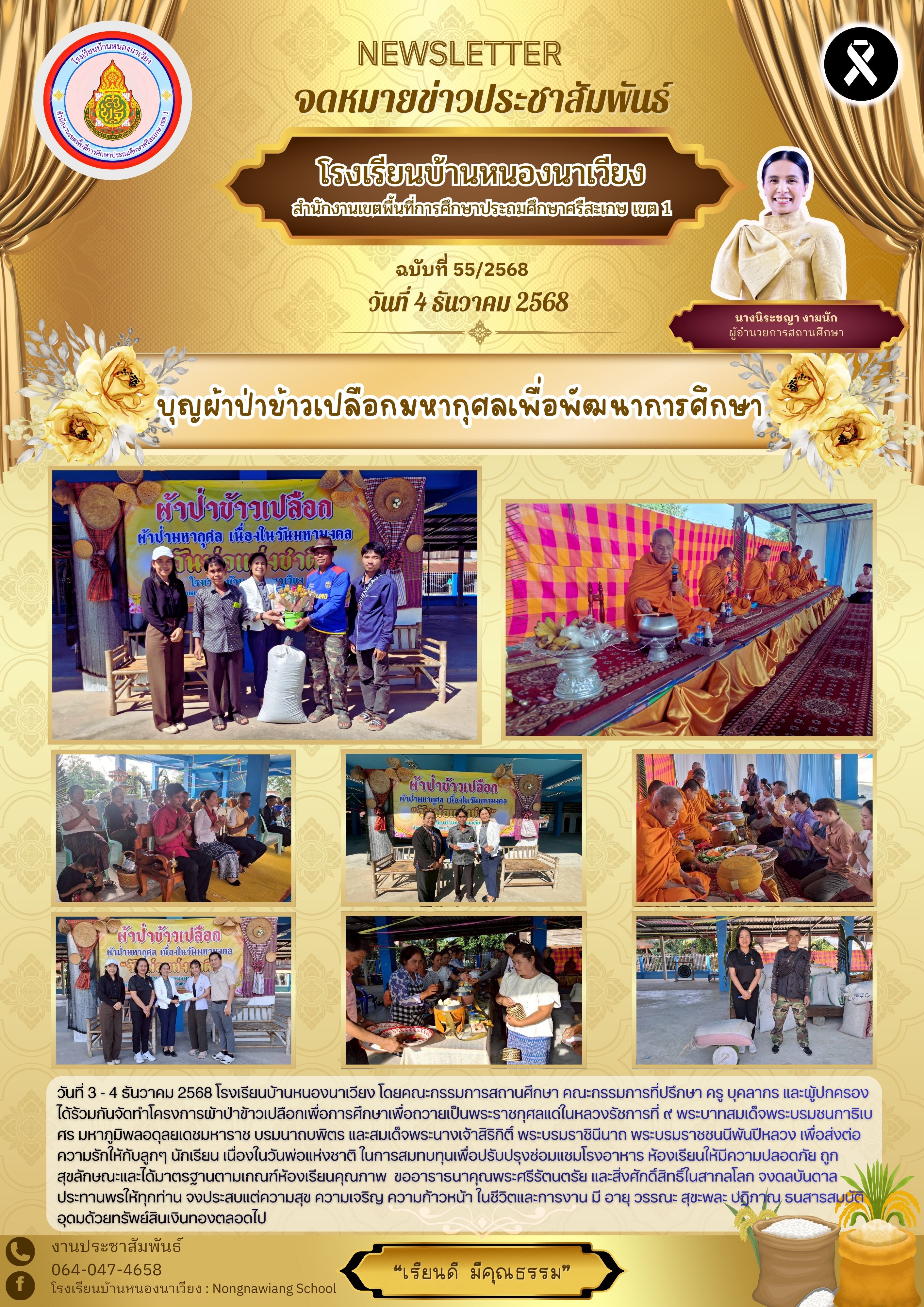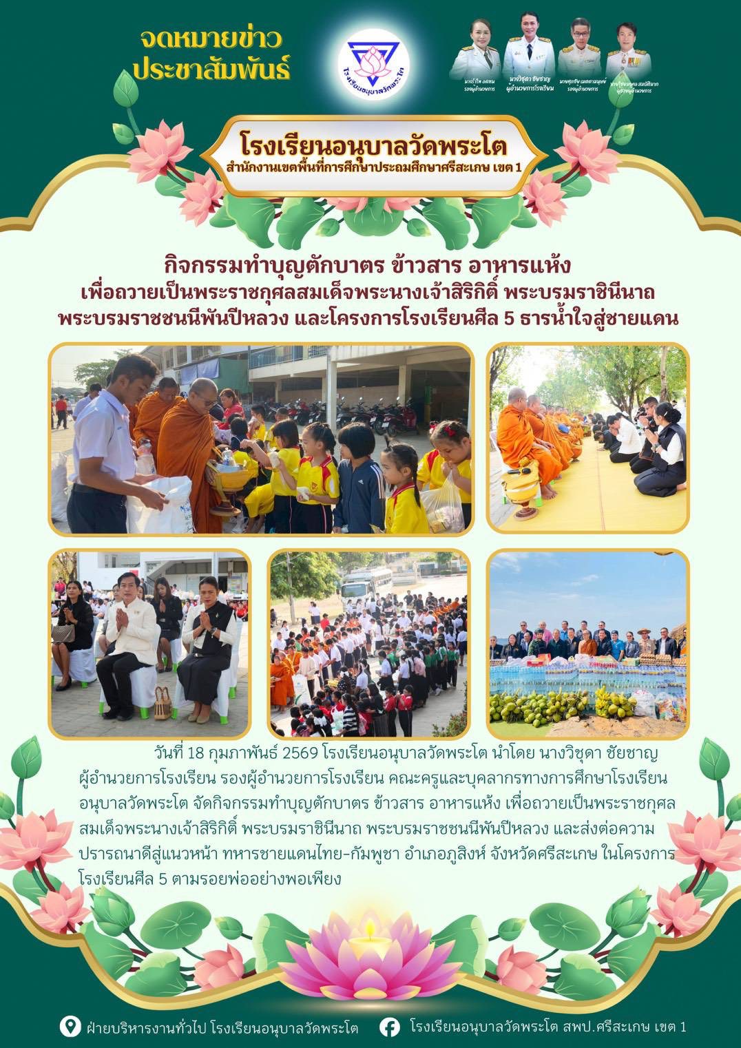 กิจกรรมทำบุญตักบาตร ข้าวสาร อาหารแห้ง เพื่อถวายเป็นพระราชกุศลสมเด็จพระนางเจ้าสิริกิติ์พระบรมราชินีนาถ พระบรมราชชนนีพันปีหลวง นำเสนอเมื่อ 2 มี.ค.69 อ่านแล้ว: 4 ครั้ง