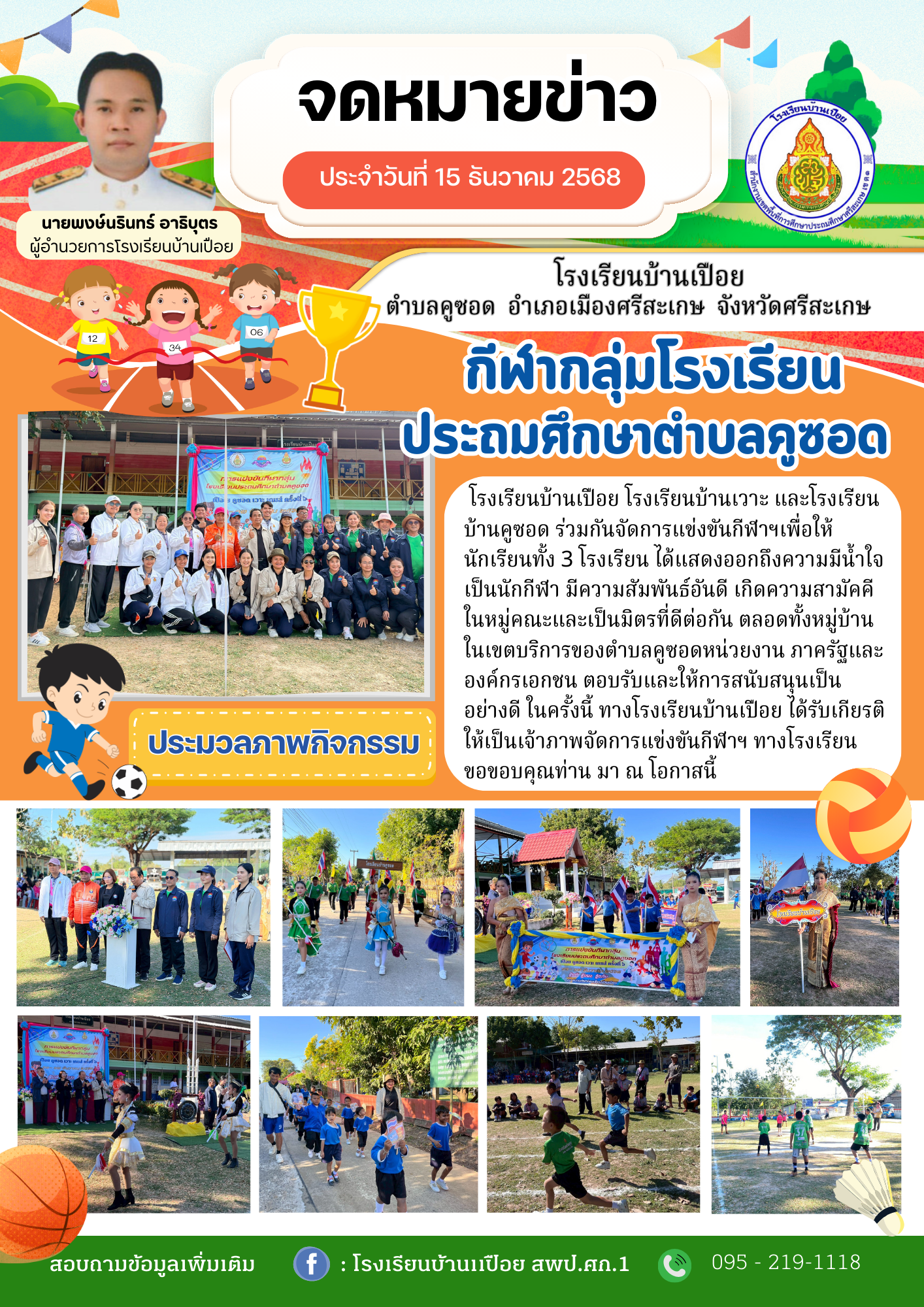 แข่งขันกีฬากลุ่มเครือข่ายพัฒนาคุณภาพการศึกษาแบบบูรณาการเมืองพระธาตุเรืองรอง ประจำปีการศึกษา 2568 นำเสนอเมื่อ 17 ก.พ.69 อ่านแล้ว: 9 ครั้ง