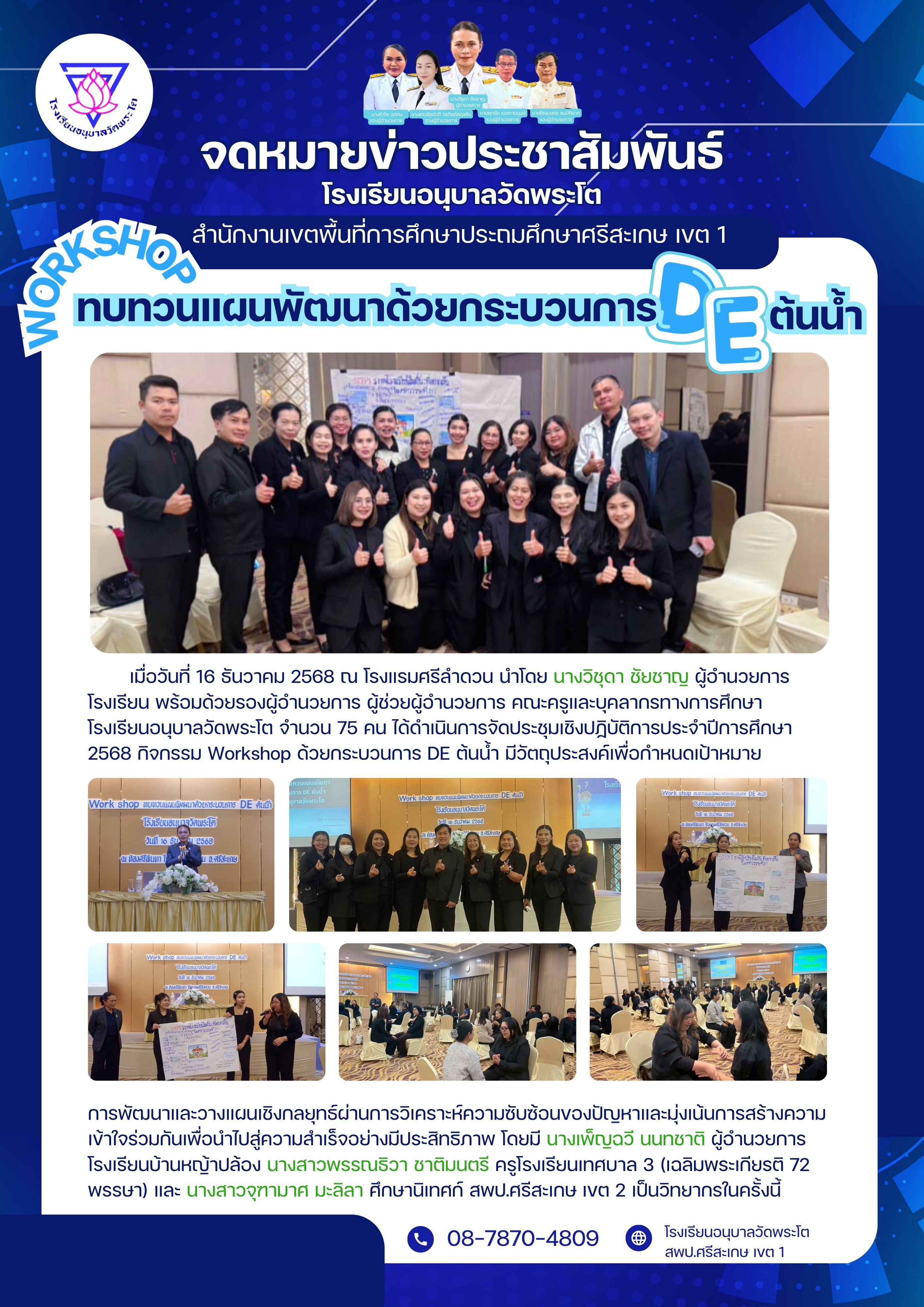 รร.บ้านผักบุ้ง อ.กันทรารมย์ เมื่อวันที่ 15 ธันวาคม 2564 นำโดยท่านผู้อำนวยการระหงค์ นันตโลหิต นำคณะกรรมการสถานศึกษา และหัวหน้าฝ่าย ของโรงเรียนร่วมปรึกษาหารือ ในการจัดงานบุญประเพณีประจำปี ผักบุ้งตุ้มโฮม ฮ่วมบุญข้าวเปลือก 2564 นำเสนอเมื่อ 27 ธ.ค.64 อ่านแล้ว: 26 ครั้ง