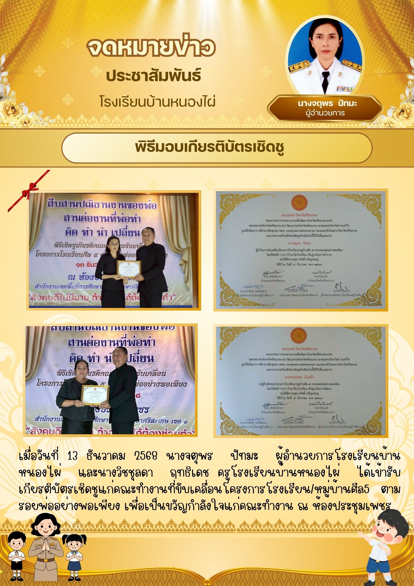 ผอ.สพป.ศก.1 เข้าเยี่ยมให้กำลังใจ นำเสนอเมื่อ 15 ธ.ค.64 อ่านแล้ว: 16 ครั้ง
