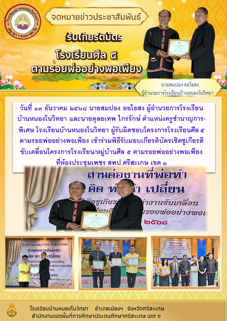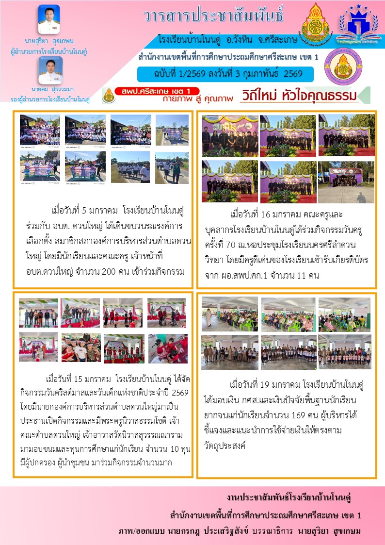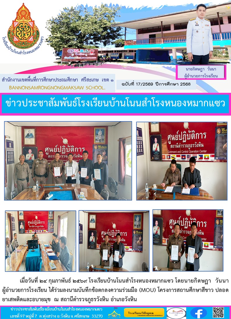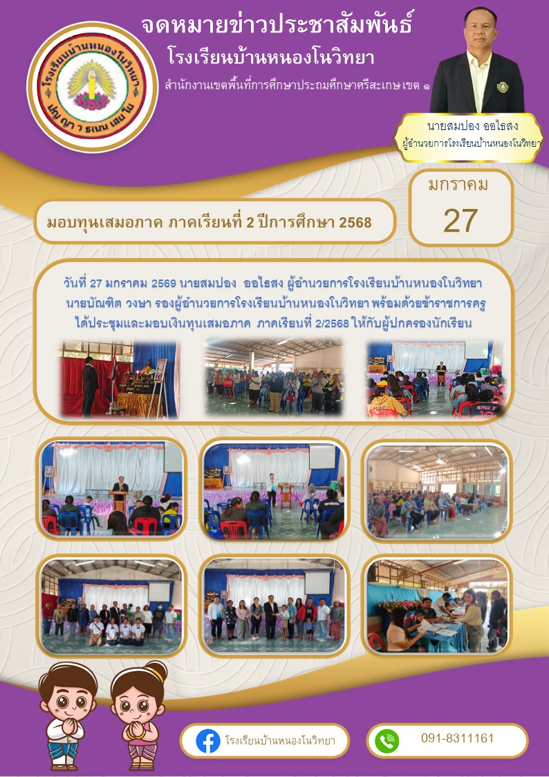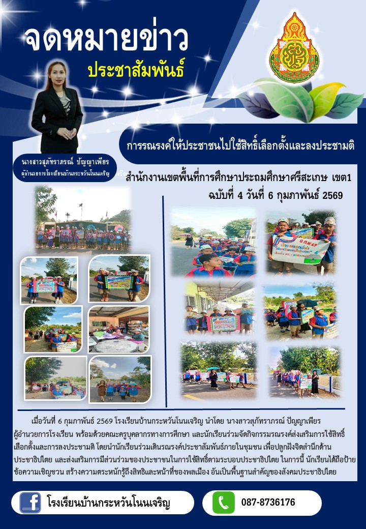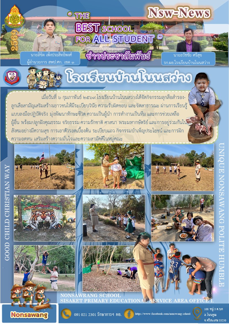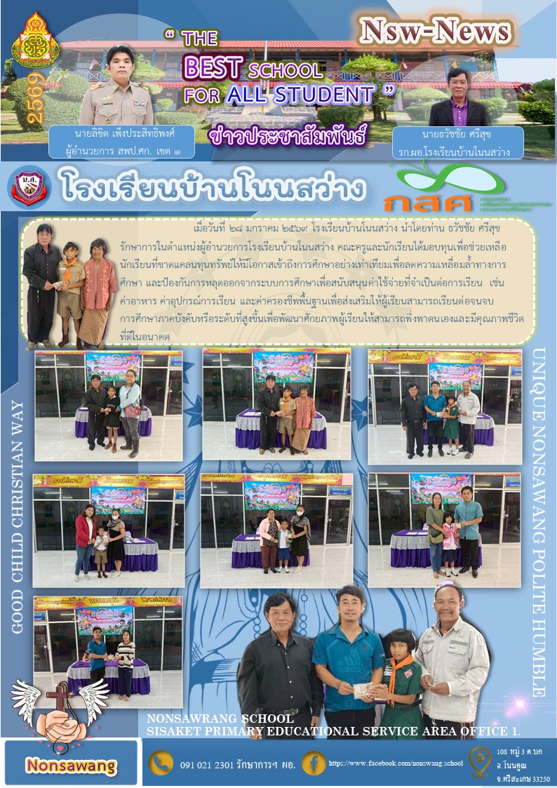 โรงเรียนบ้านหนองสาดโนนเจริญ นำเสนอเมื่อ 3 มี.ค.69 อ่านแล้ว: 2 ครั้ง