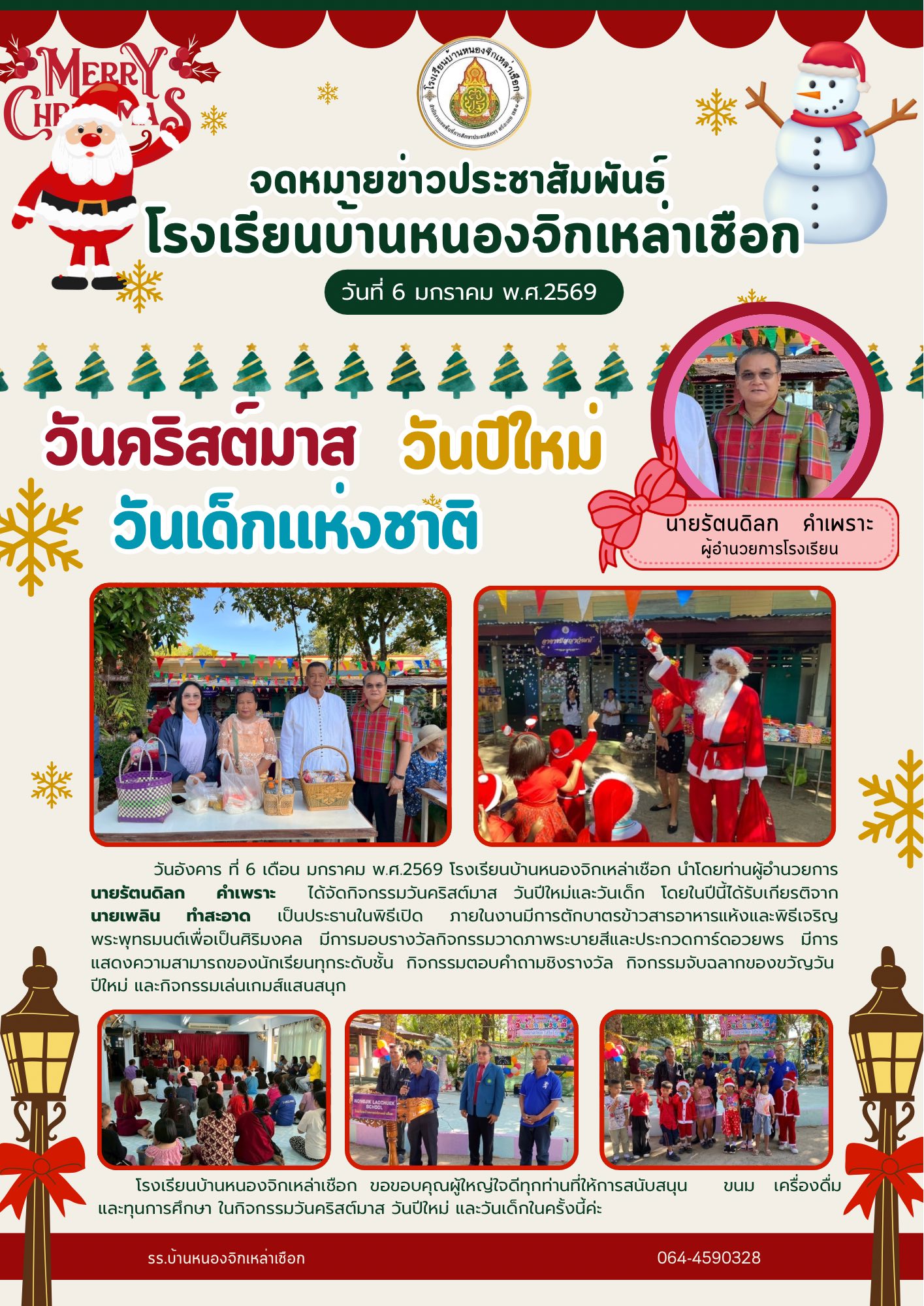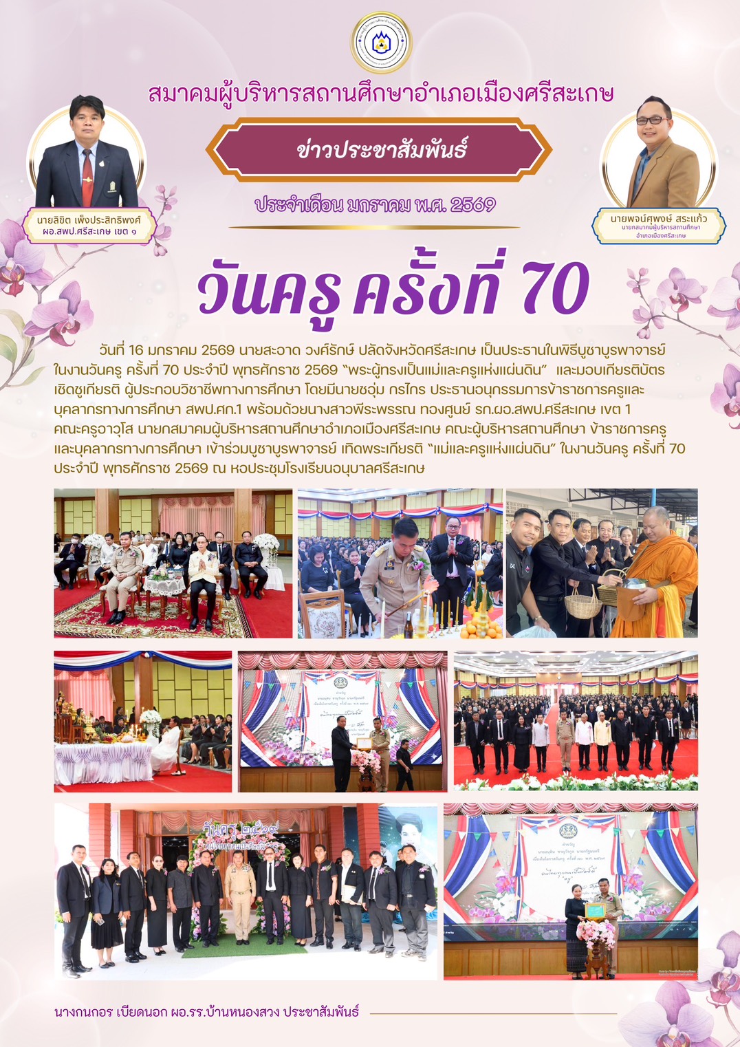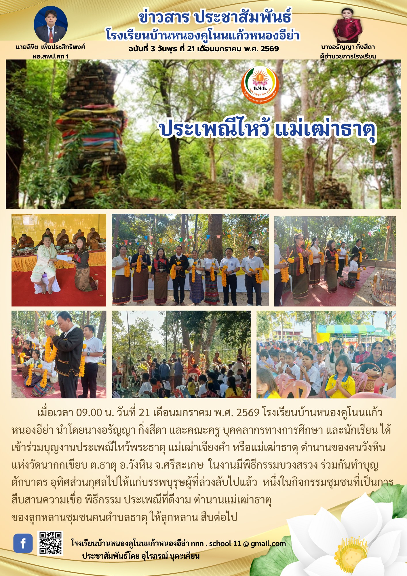 โรงเรียนบ้านหนองแคน(คุรุราษฎร์สามัคคี) นำโดยนายภวัต สุนทรกุลภัทร และคณะครู ได้จัดกิจกรรมตักบาตรข้าวสารอาหารแห้งและนำนักเรียนทำบุญเนื่องในวันมาฆบูชา ณ วัดบ้านหนองแคน นำเสนอเมื่อ 3 มี.ค.69 อ่านแล้ว: 8 ครั้ง