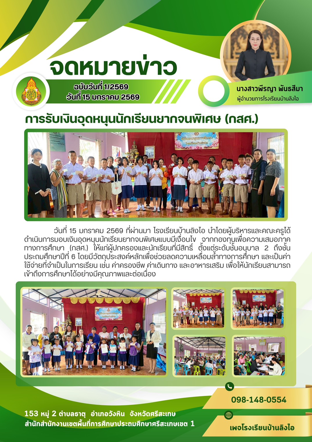 การจ่ายเงินปัจจัยพื้นฐานสำหรับนักเรียนยากจน นำเสนอเมื่อ 25 ก.พ.69 อ่านแล้ว: 3 ครั้ง