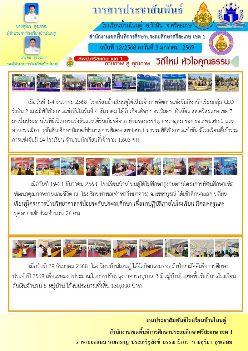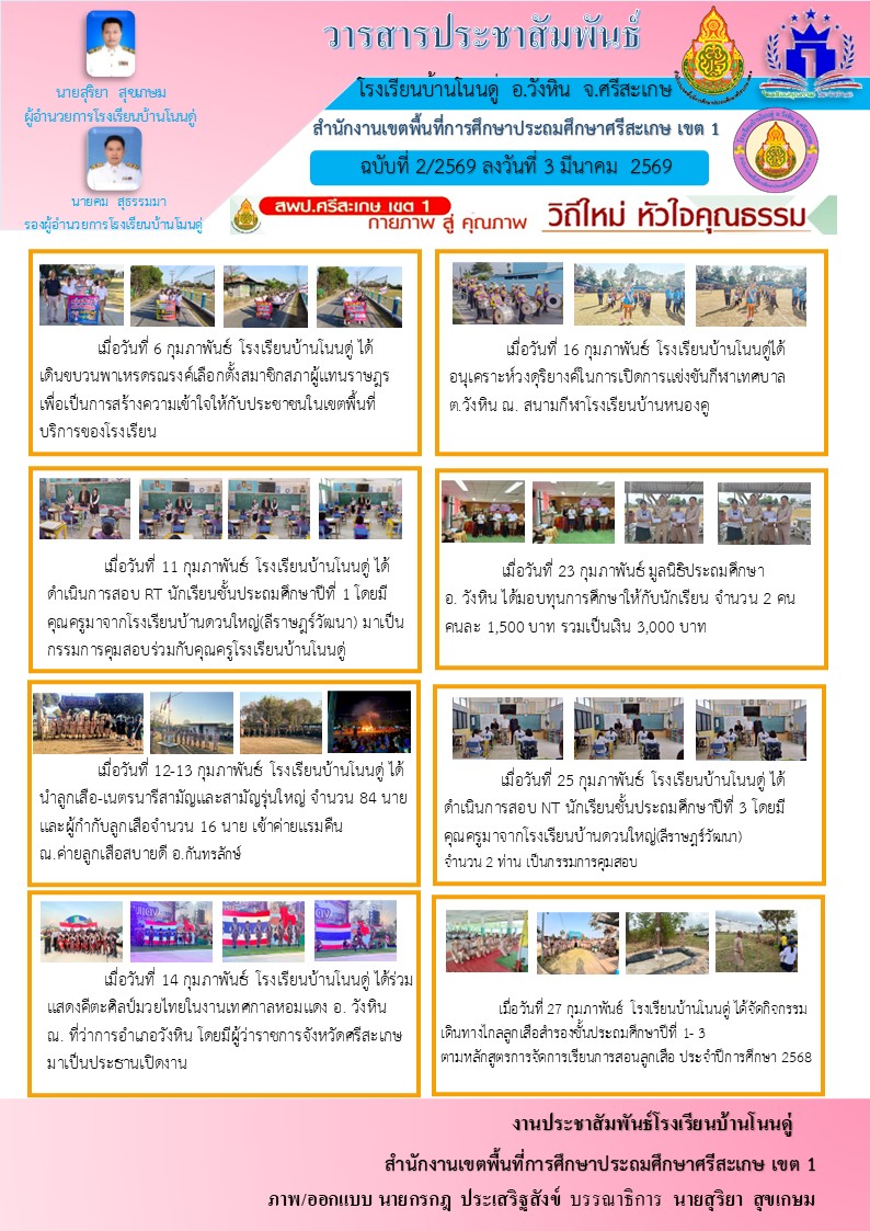 ส่งภาพข่าวประชาสัมพันธ์ โรงเรียนบ้านบอนวิทยา นำเสนอเมื่อ 25 ก.พ.69 อ่านแล้ว: 4 ครั้ง