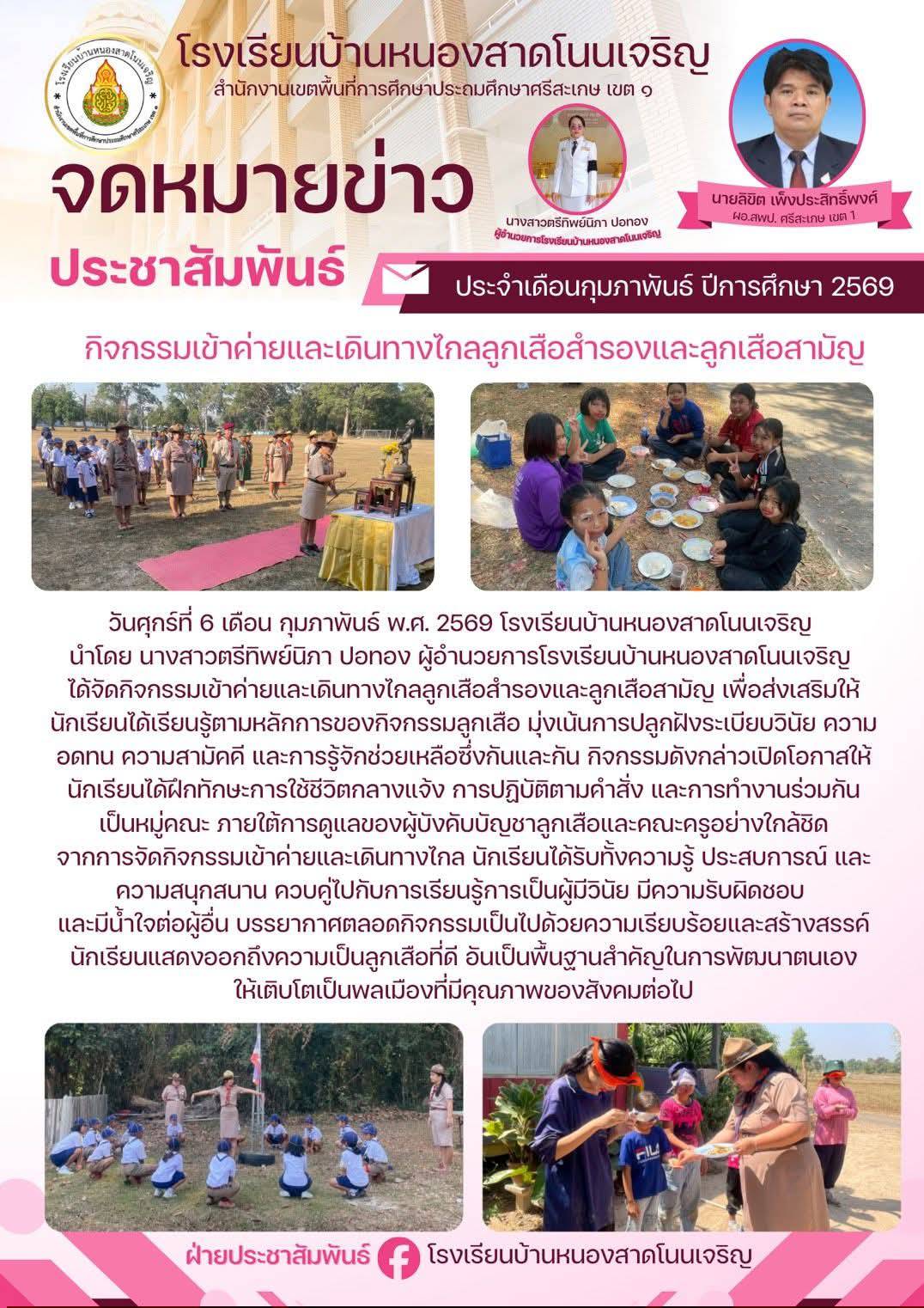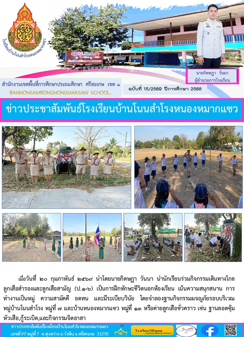 กิจกรรมเดินทางไกลลูกเสือสำรองและลูกเสือสามัญ (ป.1-6) นำเสนอเมื่อ 6 มี.ค.69 อ่านแล้ว: 1 ครั้ง