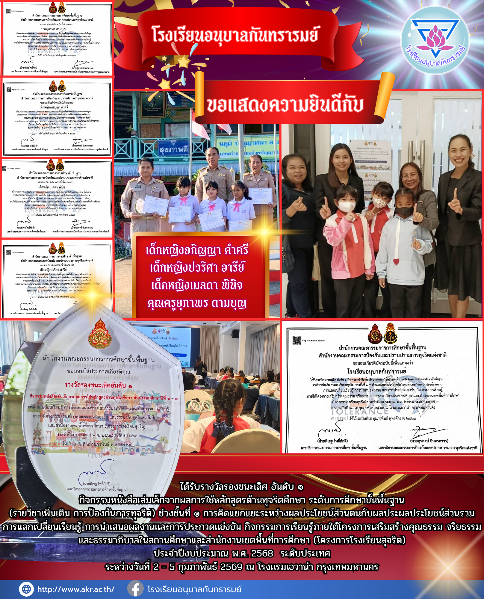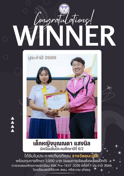 ขอแสดงความยินดีกับนักเรียนคนเก่ง นำเสนอเมื่อ 2 มี.ค.69 อ่านแล้ว: 6 ครั้ง