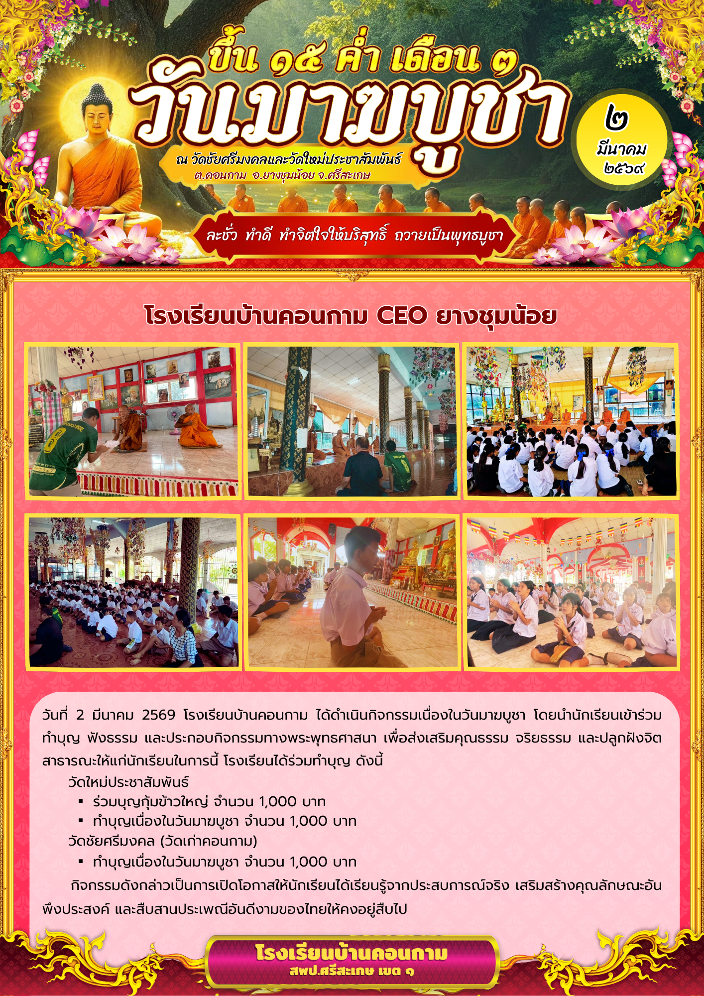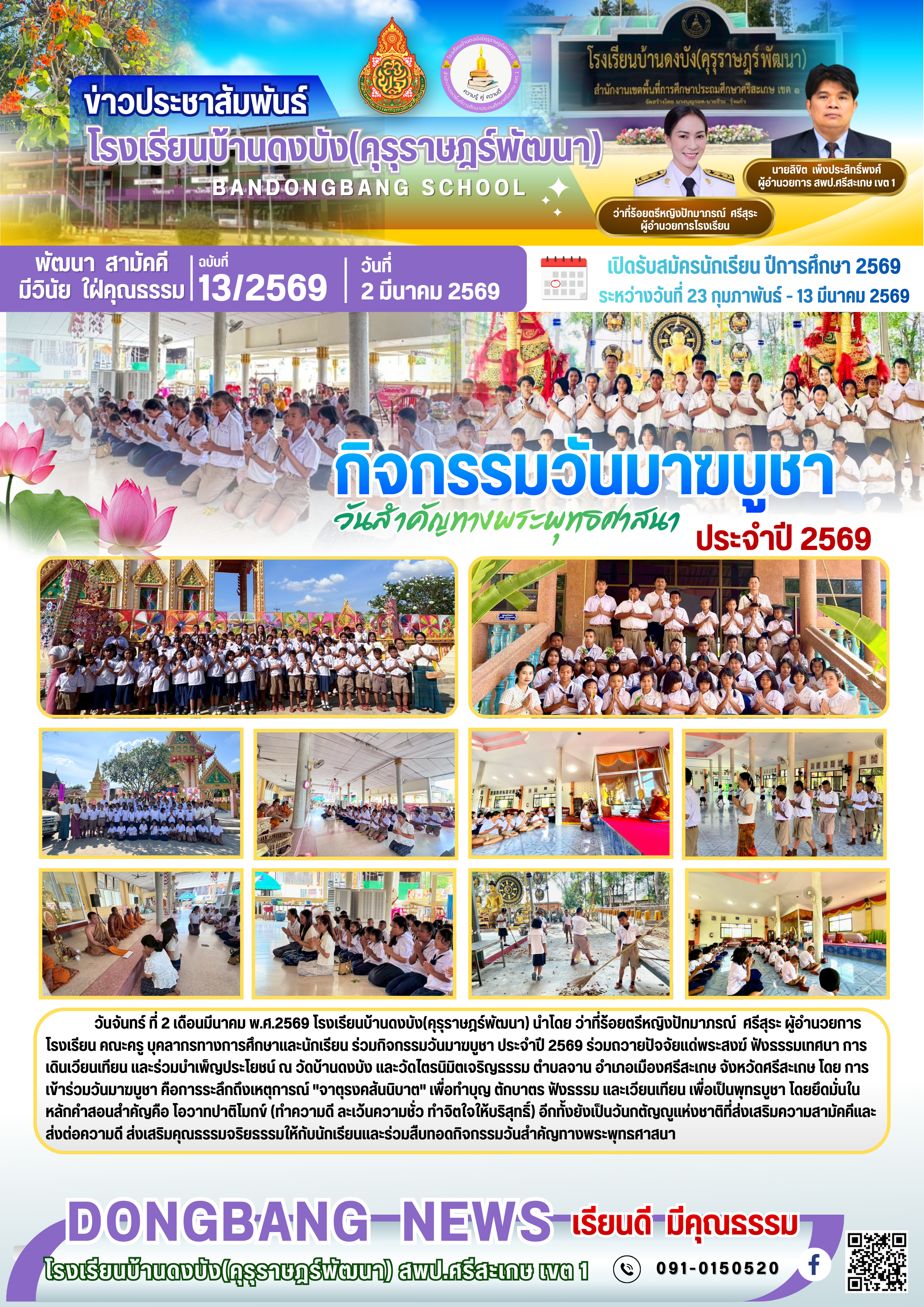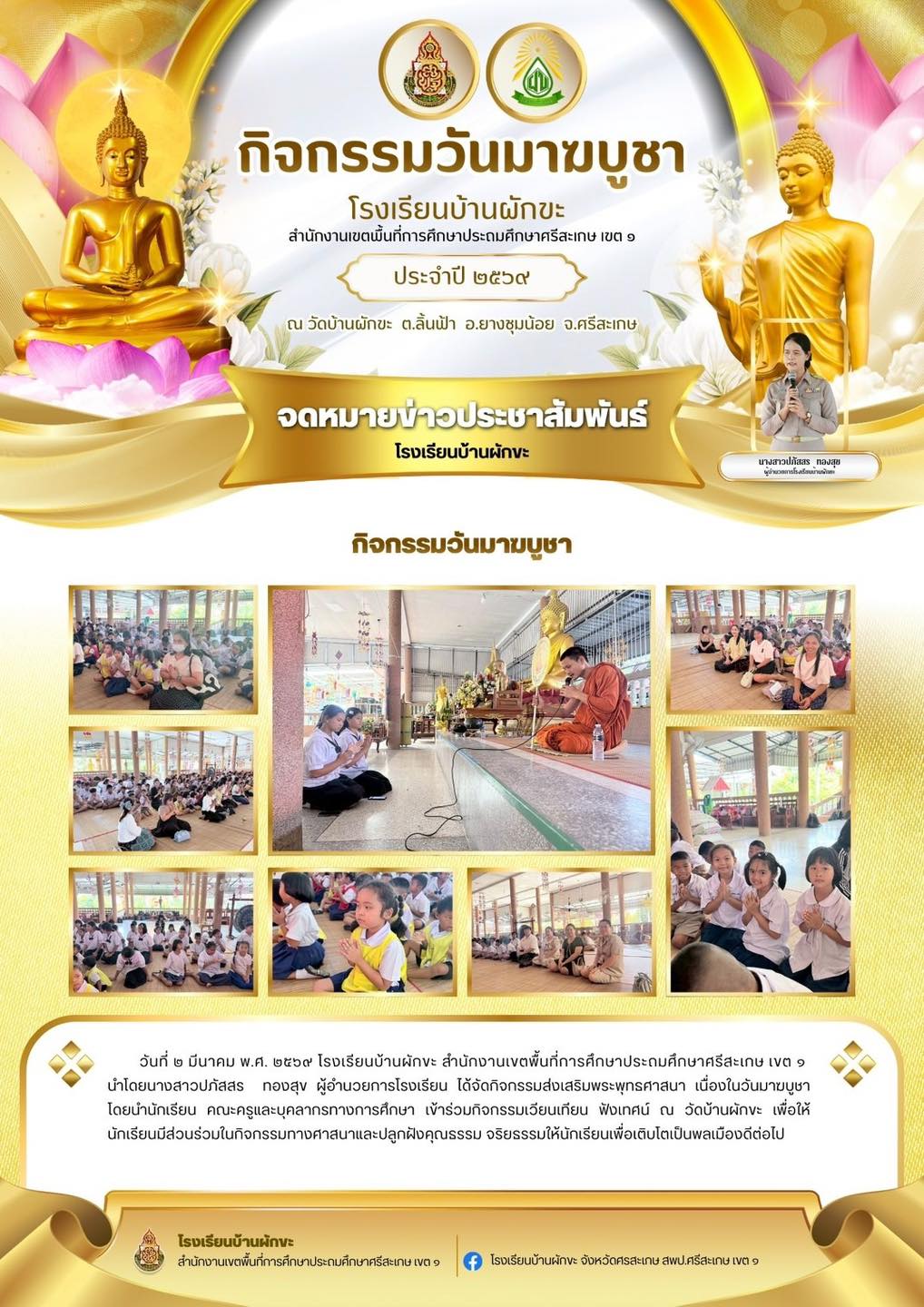 กิจกรรมวันมาฆบูชา นำเสนอเมื่อ 3 มี.ค.69 อ่านแล้ว: 1 ครั้ง