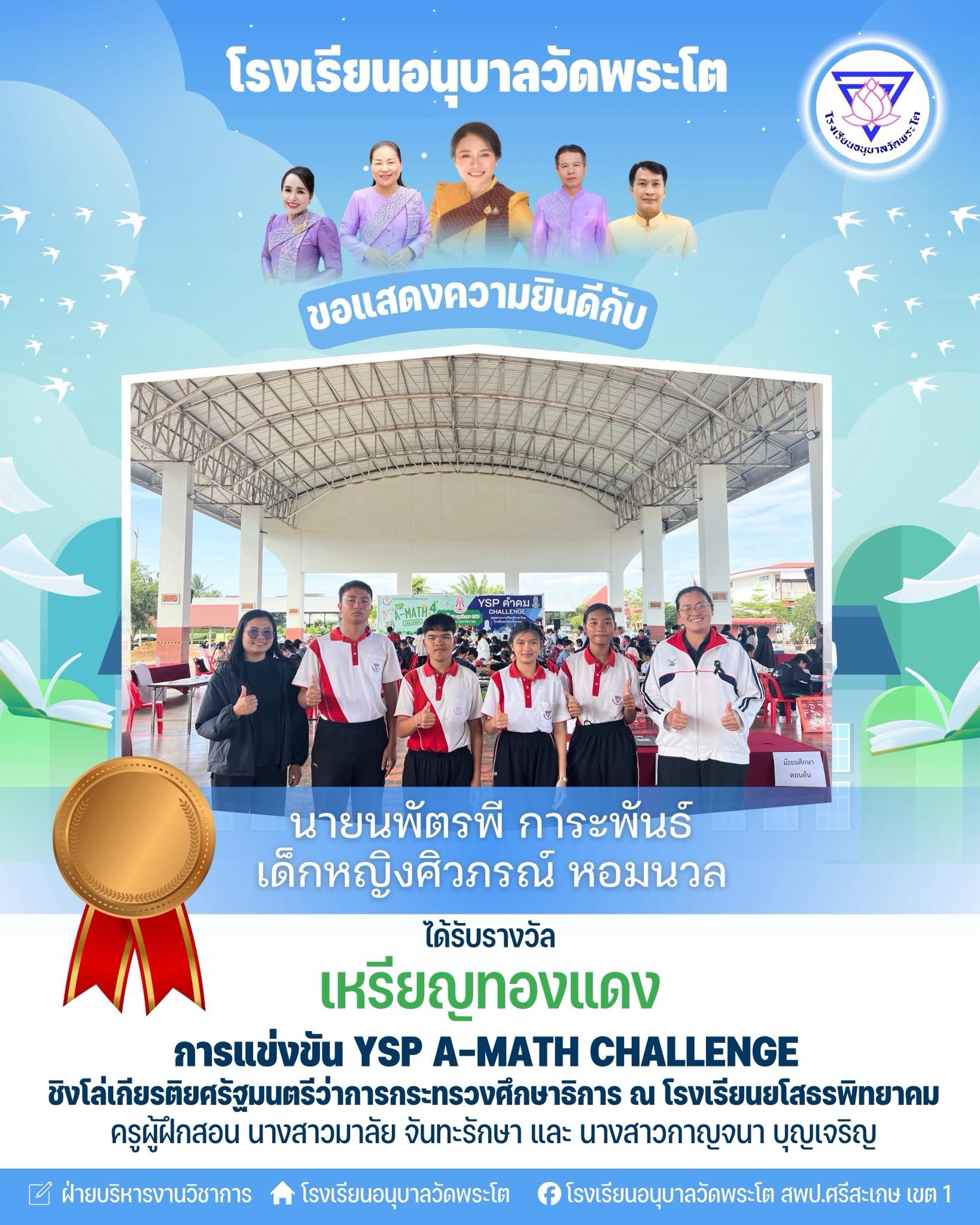 ขอแสดงความยินดีกับนักเรียนคนเก่ง นำเสนอเมื่อ 2 มี.ค.69 อ่านแล้ว: 11 ครั้ง